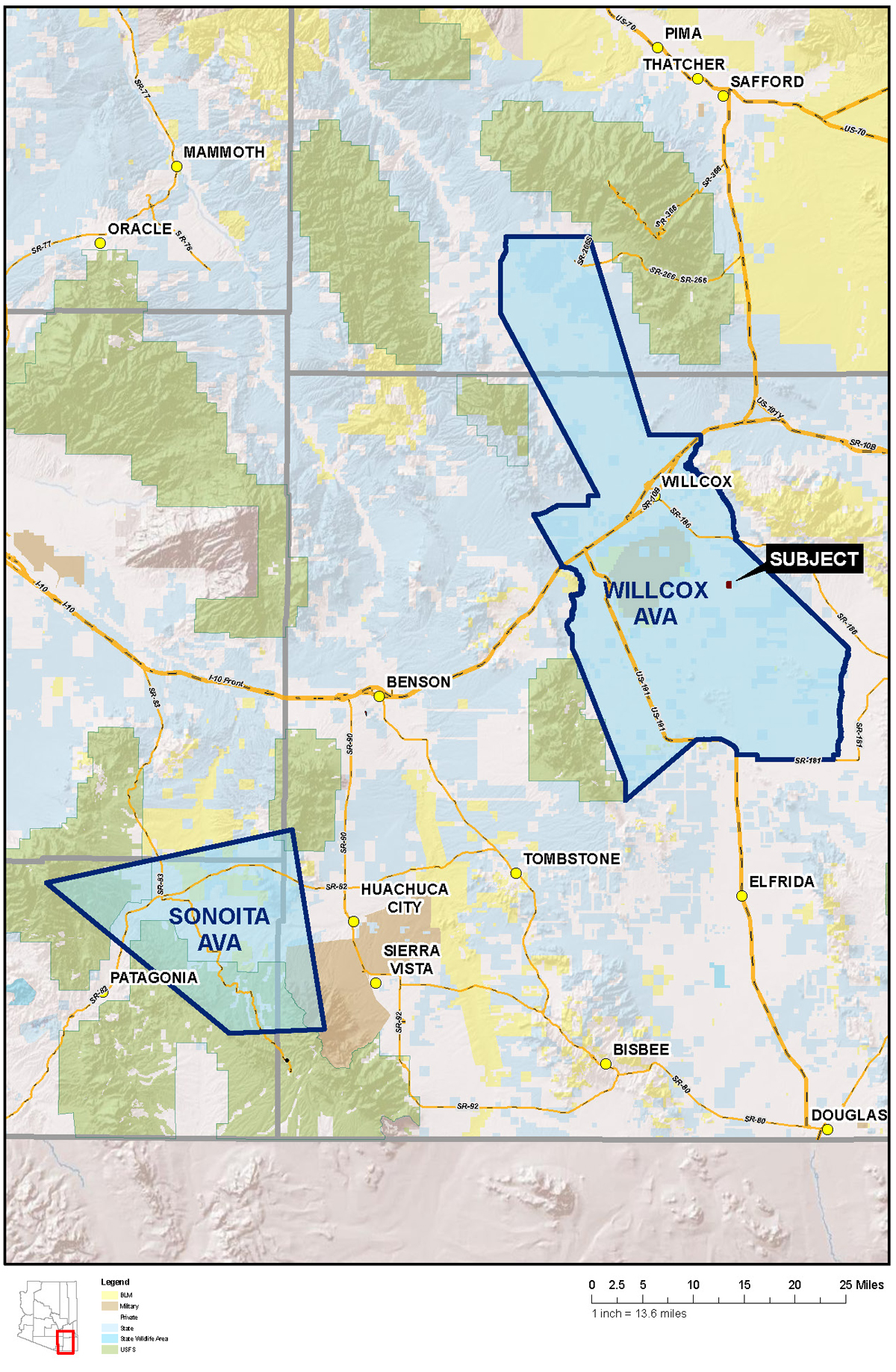 Subject in Willcox AVA map